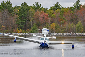 Lake preparing to land on a river |
